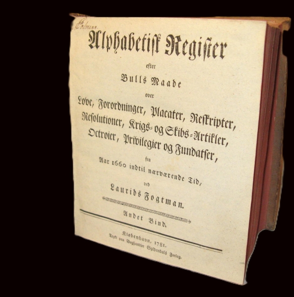 Alphabetisk Register efter Bulls Maade over Love, Forordninger, Placater, Reskripter, Resolutioner, Krigs- og Skibs-Artikler, Octroier, Privilegier og Fundatser fra Aar 1660 indtil nærværende Tid. Vol 2
