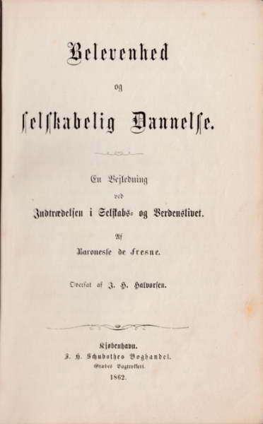 Belevenhed og selskabelig Dannelse. En Vejledning ved Indtrædelsen i Selskabs- og Verdenslivet.