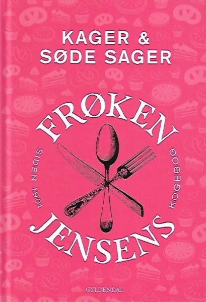 [Håndbøger - Hobby - Mad og drikke - Opskriftsbøger]. Redigeret, udvalgt og bearbejdet af Nanna Simonsen. Et udvalg af de bedste opskrifter på store kager, portionskager, tærter og rundopskrifter fra Frøken Jensens Kogebog, der første gang udkom i 1901. Frk. Kristine Marie Jensen (1858-1923) var i en menneskealder husbestyrerinde i sangeren Lauritz Melchiors barndomshjem.