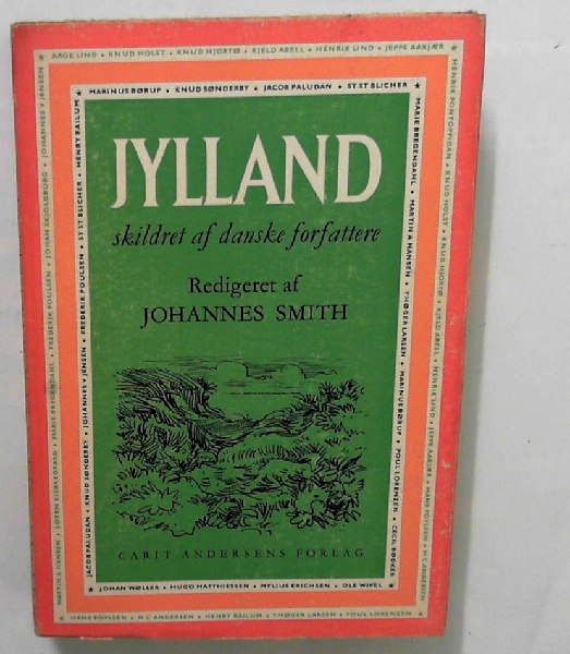 Indhold: Fortalen til Jydske lov. Ebbe Skammelsøn. H.C. Andersen: Bispen på Børglum og hans frænde. Martin A. Hansen: Jysk kirkebygning. L. Mylius Erichsen: Den jyske hede. [...] Steen Steensen Blicher: Den cimbriske halvøe. C.P. Eisenreich: Det nørrejydske redningsvæsen. Søren Kierkegaard: Dagbog fra Jyllandsrejse. Hugo Mathiessen: Fjord og folk. Poul Lorenzen: Rold og Rebild. Henry Bailum: Kisum kæltringer. Jeppe Aakjær: De spæde år. Johan Skjoldborg: I Lendum Klit. Henrik Pontoppidan: Drengeaar. Frederik Poulsen: Landsbyens børn. Thøger Larsen: Jens Højby. Johannes V. Jensen: Mortens juleaften. Marie Bregendahl: Christense. Hans Povlsen: Kaspar. Knud Hjortø: Rokballe-Maren. Aage Lind: Kresten, hans saga. Jørgen Nielsen: Solstrejf. Jacob Paludan: Hos jyderne. Johan Wøller: Mors. Kjeld Abell: Ribe. Henrik Lind: In memoriam. Marinus Børup: Nyforlovet enkemand. Knud Sønderby: Esbjerg. Cecil Bødker: Døvens dør. Knud Holst: Marken. Ole Wivel: Afsked med Jylland