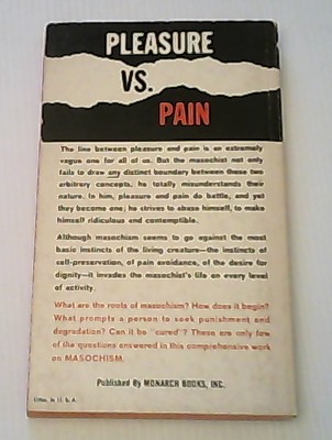 A dramatic case-history study of the relation between pleasure and pain! With case histories. Some notes with pencil. Cracked spine. Scarce pseudonym title by Robert Silverberg.