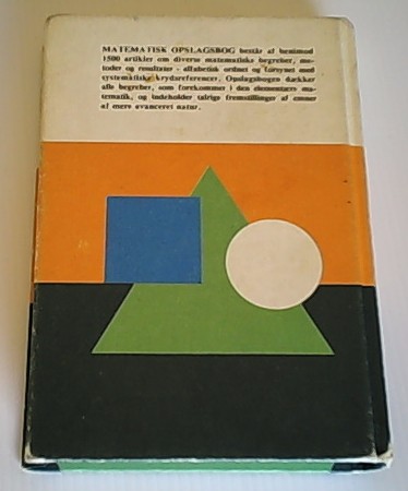 Illustreret i sort-hvid. Oversat til dansk og bearbejdet af Poul Einer Hansen & Finn Berg Rasmussen efter "The crecent dictionary of mathematics (1962)". Navn på friblad.