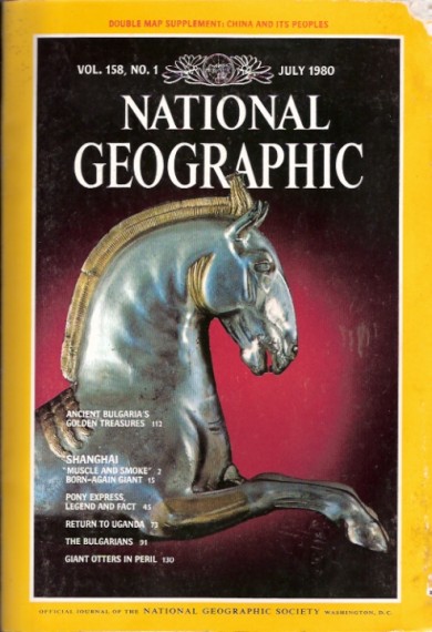 Includes: Double Map Supplement: China and Its Peoples. Cover Features: Ancient Bulgaria's Golden Treasures - Shanghai "Muscle and Smoke", Born-Again Giant - Pony Express, Legend and Fact - Return to Uganda - The Bulgarians - Giant Otters in Peril.